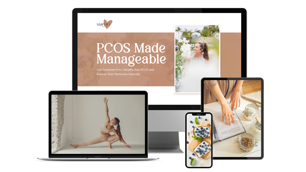 PCOS Made Manageable is a complete lifestyle transformation program built for women with PCOS who are ready to finally lose weight, balance their hormones, and feel in control of their body again.